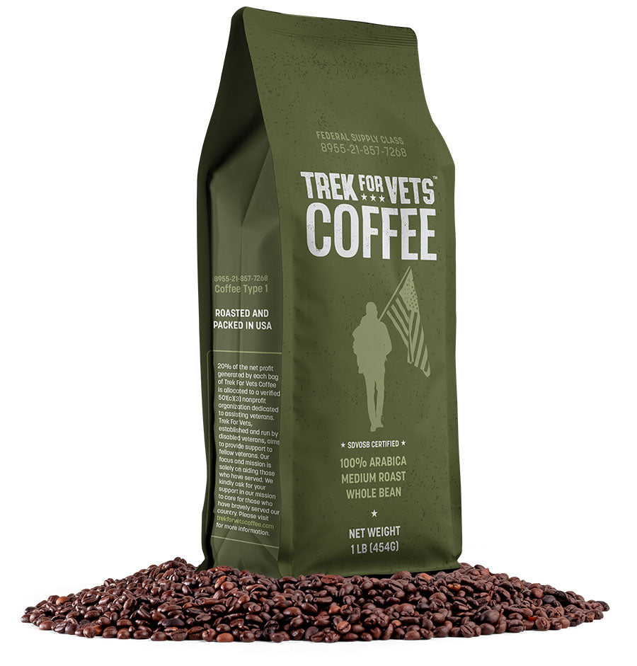Trek For Vets Coffee ISOLATION BLEND. 100% Arabica, medium roast coffee, roasted whole beans. This coffee has hints of dark chocolate, black plum, and walnut, all with a BOLD finish. Each back contains 1 pound of beans.